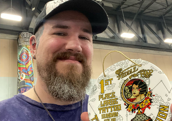 I’ve been an artist for as long as I can remember. I work with acrylic paint when I paint canvases, and I’m also a full time tattoo artist. But I’m a man of many hobbies and interests beyond art and tattooing. I enjoy restoring classic cars, playing guitar, writing music and singing, and building instruments, especially drums and traditional folk instruments. I am also an antique dealer and collector of antiques and oddities. I play Dungeons and Dragons, I love Renaissance Festivals, and I enjoy cosplay and creating costumes and armor. I dabble in taxidermy and collect bones, cool sticks, rocks, crystals, and fossils. I’m a nature lover and I enjoy hiking and camping, and I have a deep love for trees and the wilderness. Someday I hope to co-write and illustrate a fantasy novel with my wife, Bobbi Brossard.
